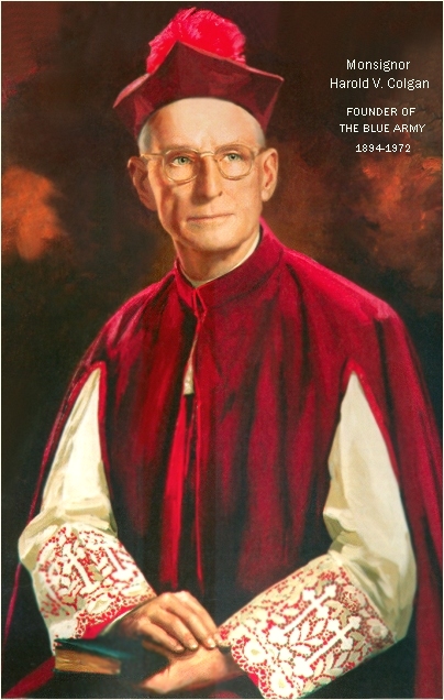 Tal proyecto era audaz, pero ni el Padre Colgan ni Haffert eran personas sin dudas ante responsabilidades futuras. Así nace el Ejercito Azul. Desde aquel día, Colgan y Haffert nunca más se separaron. Uno es la llama y el otro las tormenta. Pero ambos planean y ejecutan. Colgan hasta vendió su coche para cubrir los primeros gastos. En Mayo de este mismo año, el humilde párroco de Plainfield, fue al Vaticano para presentar el proyecto al Santo Padre, el Papa Pio XII, que le recibió y le dijo: “Como jefe mundial contra el comunismo, yo te bendigo junto a todos los miembros del Ejercito Azul”. La fundación del Ejercito Azul estaba hecha. Como fuego iría extendiéndose por el mundo entero. En 1950 ya contaban con un millón de miembros registrados. En 1953, cinco millones y, hoy en día, el número asciende a veinte millones, repartidos por muchos países en todo el mundo.